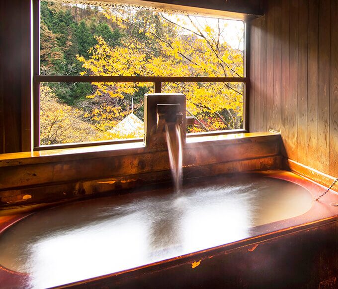 伊香保温泉のシンボルとも言える「黄金の湯」。その源泉かけ流しを贅沢に楽しめます。