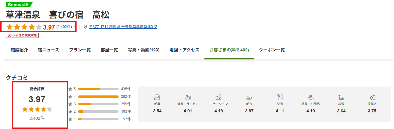 楽天トラベルの口コミでは、