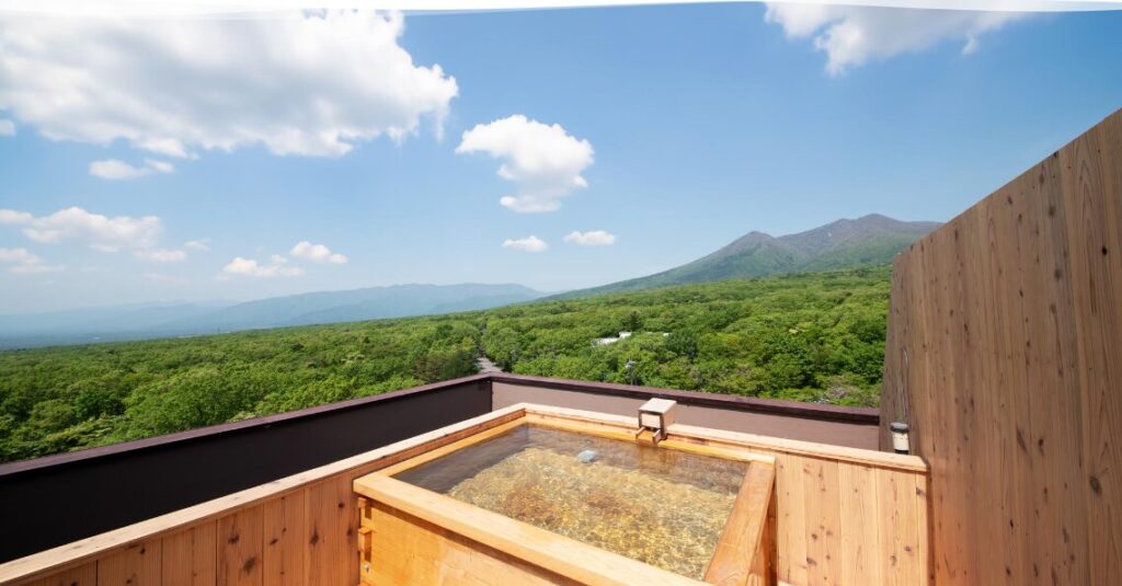 那須高原のパノラマを一望できるこのお風呂は、宿泊者なら誰でも予約制で利用することができます。